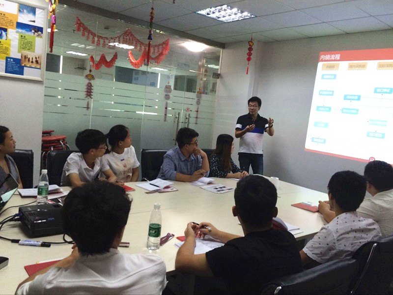 圖為學員入職后在孚盟廣州分公司會議室進行企業產品培訓