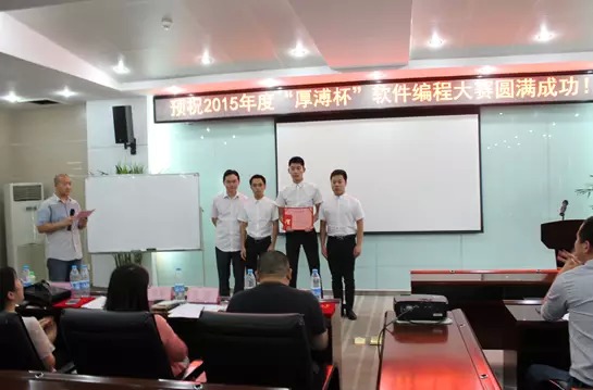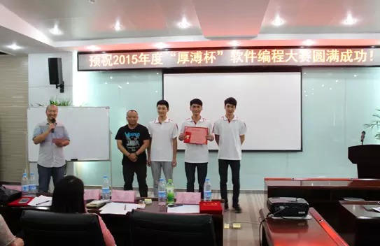 最后由主持人涂建老師對大賽進行最后總結(jié),同學們在準備這次比賽的過程中有很多的收獲,來到這次比賽現(xiàn)場與其他院校的同學們交流亦有更多的收獲!最后主持人涂建老師宣布2015年度“厚溥杯”軟件編程大賽取得圓滿成功!
