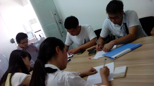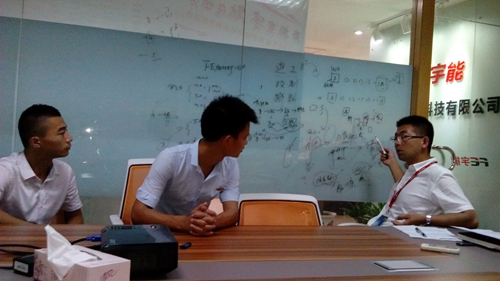 2014年8月8日,宇艾能科技杭州分公司總經理王重遠正在給學生進行面試,面試過程中,向學生講授了大量的行業專業知識。